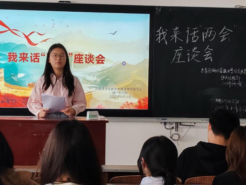 本网讯(李佳月/文 邹馨仪/图)2025年4月10日,为持续深入学习贯彻全国两会精神,共青团必赢线路检测中心法学院委员会举办了以“聚焦两会重点,勇担时代使命”—“我来话‘两会’”为主题的同侪座谈会,我院全体入团发展对象参会。