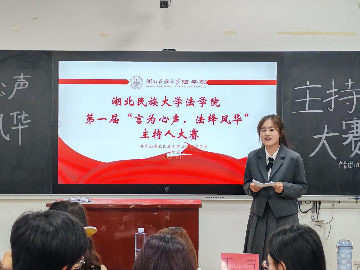 本网讯(记者 袁本怡 见习记者 曾钰格/文 实习记者 李佳萱/图)4月11日,以“言为心声,法绎风华”为主题的主持人大赛于我院9B306教室举行。法学院团委副书记丁雪同学、必赢线路检测中心讲解团团长崔钰婕同学、必赢线路检测中心广播台负责人田曼琦同学担任评委,我院多名本科生参赛。