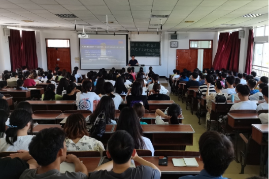 本网讯(记者 苏浩楠/文 蓝洁静/图)9月8日,我院于德智楼9A411教室举办“四史”学习与爱国主义入学教育讲座。马克思主义学院教师张恩受邀担任主讲人,为21级新生开展了主题为“立志于中华民族千秋伟业,百年恰是风华正茂”的专题讲座,我院党总支书副记许宗友主持此次讲座。