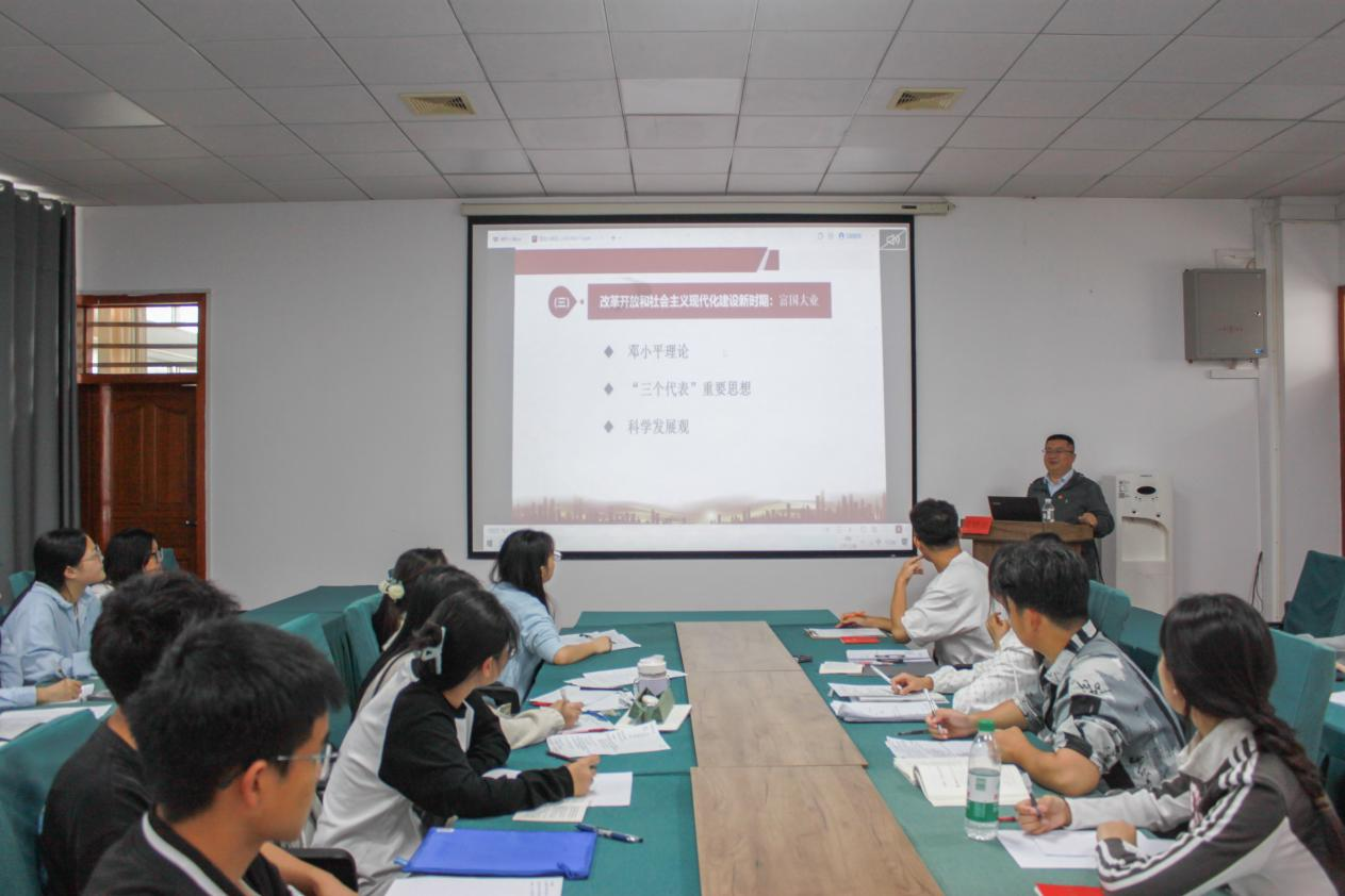 课程中,法学院党总支副书记黄晓波以“必须坚持人民至上”为主题进行授课。他以习近平新时代中国特色社会主义思想的世界观和方法论的六个坚持为切入点,明确指出必须坚持人民至上在六个坚持中的首要地位,从而引出此次理论学习的重点——人民至上。
