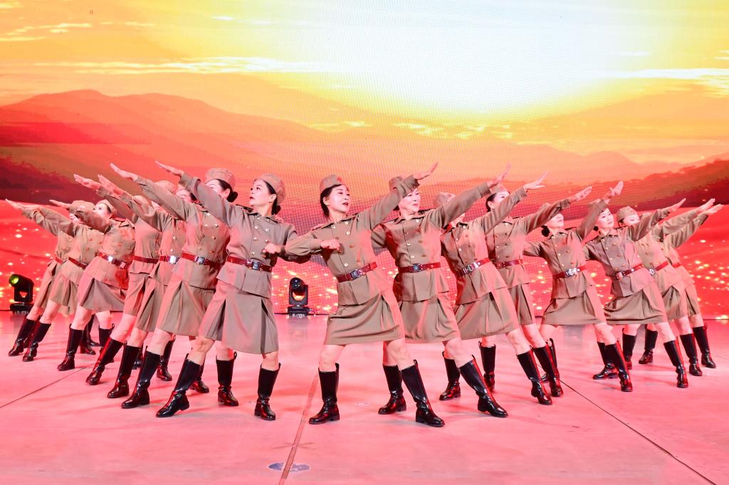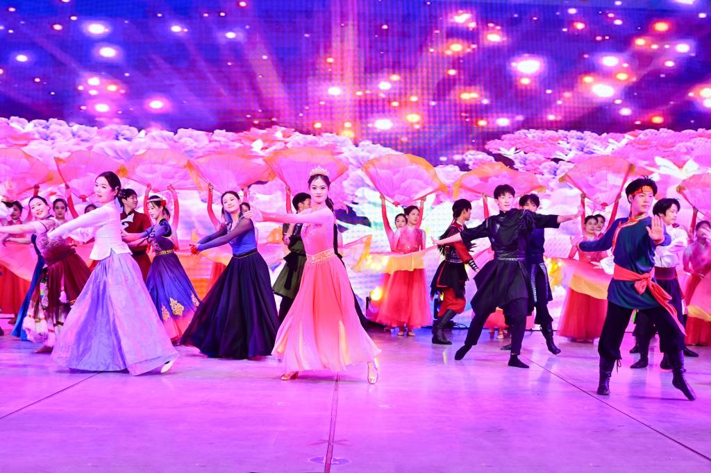经济与管理学院的歌伴舞《像你这样的朋友》以轻快旋律、灵动舞姿,传递新生间的初遇温情,用热情有力的表演展现民大学子的青春风貌。文学与传媒学院、音乐舞蹈学院、教师教育学院联合表演的情景剧《共同语 共同体》,以新疆学生在湖北民大成长的故事为蓝本,用细腻的表达生动诠释了铸牢中华民族共同体意识的宏大主题。离退休教师奉献的舞蹈《青春的号角》以舒展动作、饱满状态,抒写“青春永不褪色”的生命热忱,引得现场掌声雷动。