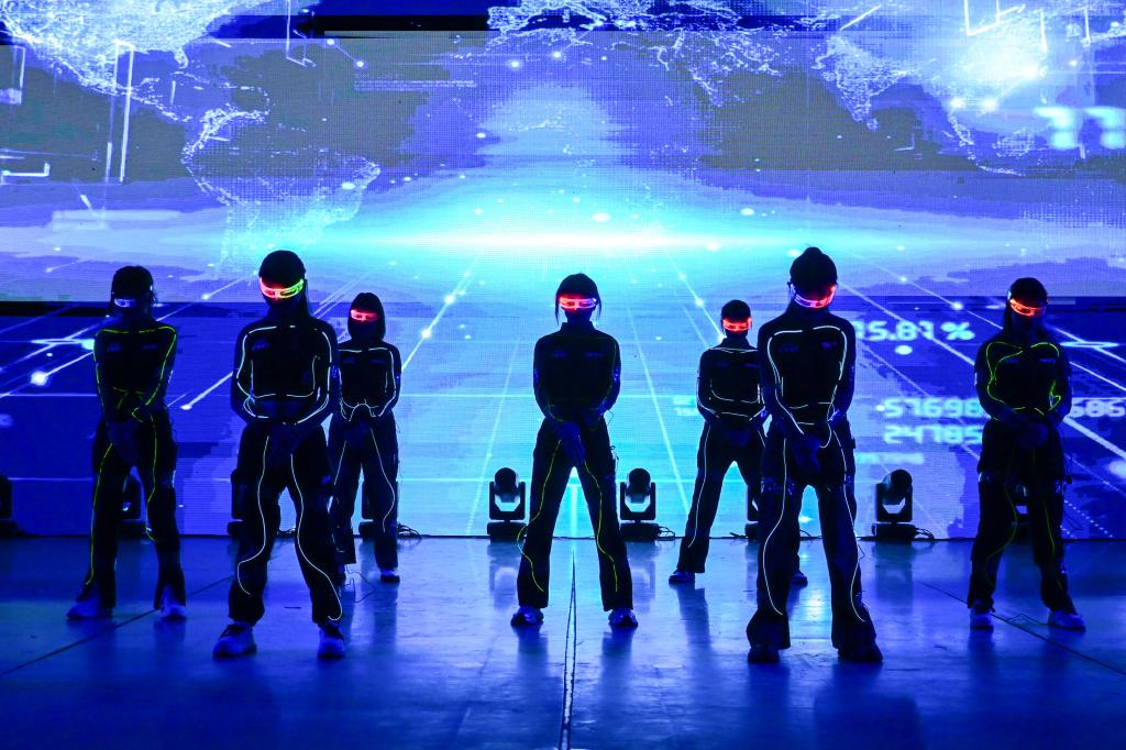 体育学院的《武韵新章》将传统武术招式与现代舞台节奏融合,刚劲拳风、整齐阵型在灯光流转间展现民大学子的飒爽风骨。医学部的舞蹈《奔跑吧》以活力四射的节奏、富有张力的编排,淋漓尽致演绎了新生群体的蓬勃朝气。智能科学与工程学院以科创展示《光遇》将编程技术与光影艺术巧妙结合——灵动光轨随旋律流转,科技感十足的舞台效果让观众沉浸式感受“科创+文艺”的独特魅力。