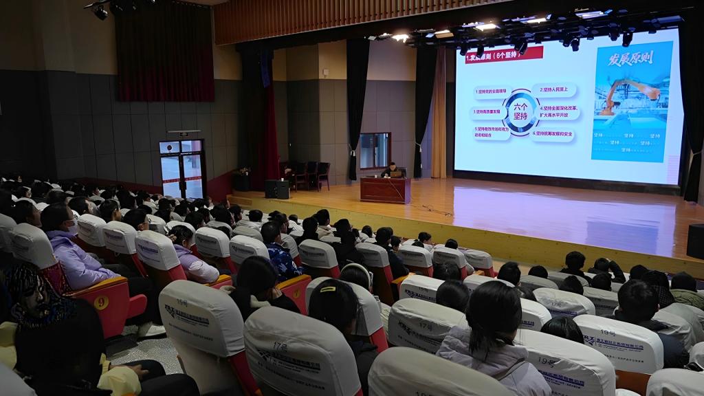 在鹤峰县思源中学,向驰副教授围绕“以党的二十届四中全会精神为指引 将青春融入国家发展大局”主题进行宣讲。他结合自身求学经历,围绕党的二十届四中全会擘画的“十五五”规划发展蓝图,阐释了青年成长与国家发展的紧密联系,将国家战略与鹤峰茶叶产业链、生态建设等地方实践相结合。他以民大优秀学子返乡奉献的事例引导同学们胸怀理想、练就本领、勇担使命,把个人成长融入家乡建设与民族复兴的洪流。