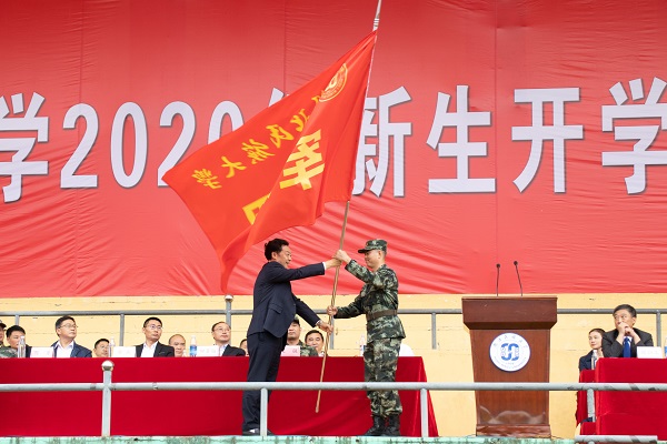 祝建波宣读军训团成立文件,吴建清为军训团授旗。宋强和承训教官代表谢理想先后发言,他们表示将在军训期间科学施训、严格管理,以言传身教的姿态将良好的军人作风及精神展现给新生。