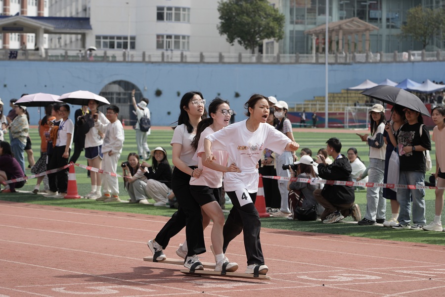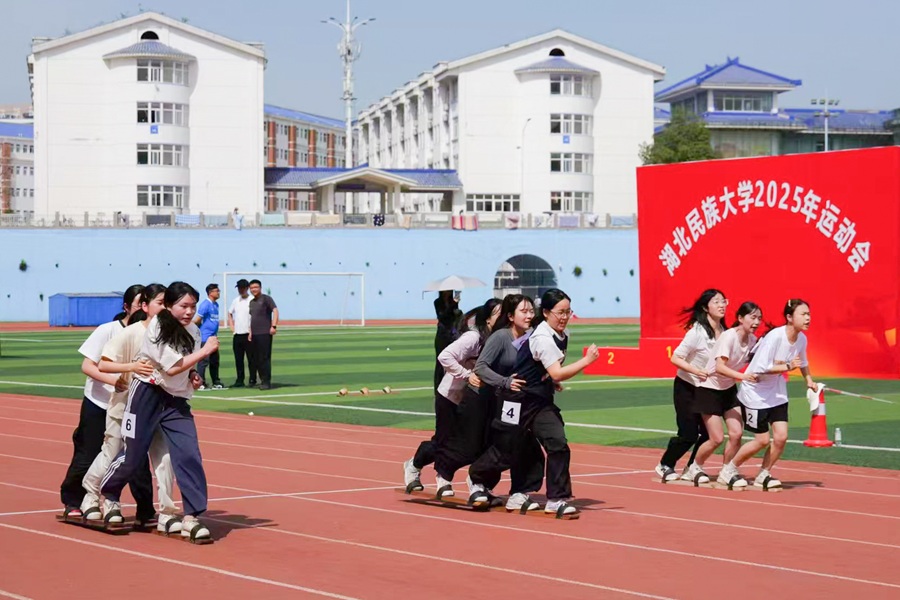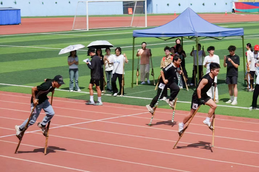 民族赛场绽芳华,青春步点踏新声。4月16日,必赢线路检测中心民族特色项目比赛在五环体育场举行。参赛选手绑紧板鞋绑带、握住竹马竹杆,木板摩擦地面,竹马蹬地向前,口号与步伐精准共振。板鞋与竹马上投下交错的光影,击地声在跑道上交织出传统与热血的交响,一次次默契的腾跃踏出民族团结的节拍。