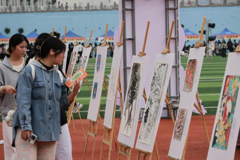 开幕式现场热闹非凡,来自利川二中的20名优秀团员代表和我校的4000余名各民族学生积极参与到各项活动之中。妙笔生花的书画作品、绚丽多彩的民族服饰、精彩纷呈的游戏体验、垂涎欲滴的民族美食、样式各异的非遗作品,将现场参与者带入了一个多元文化交融的奇妙世界。