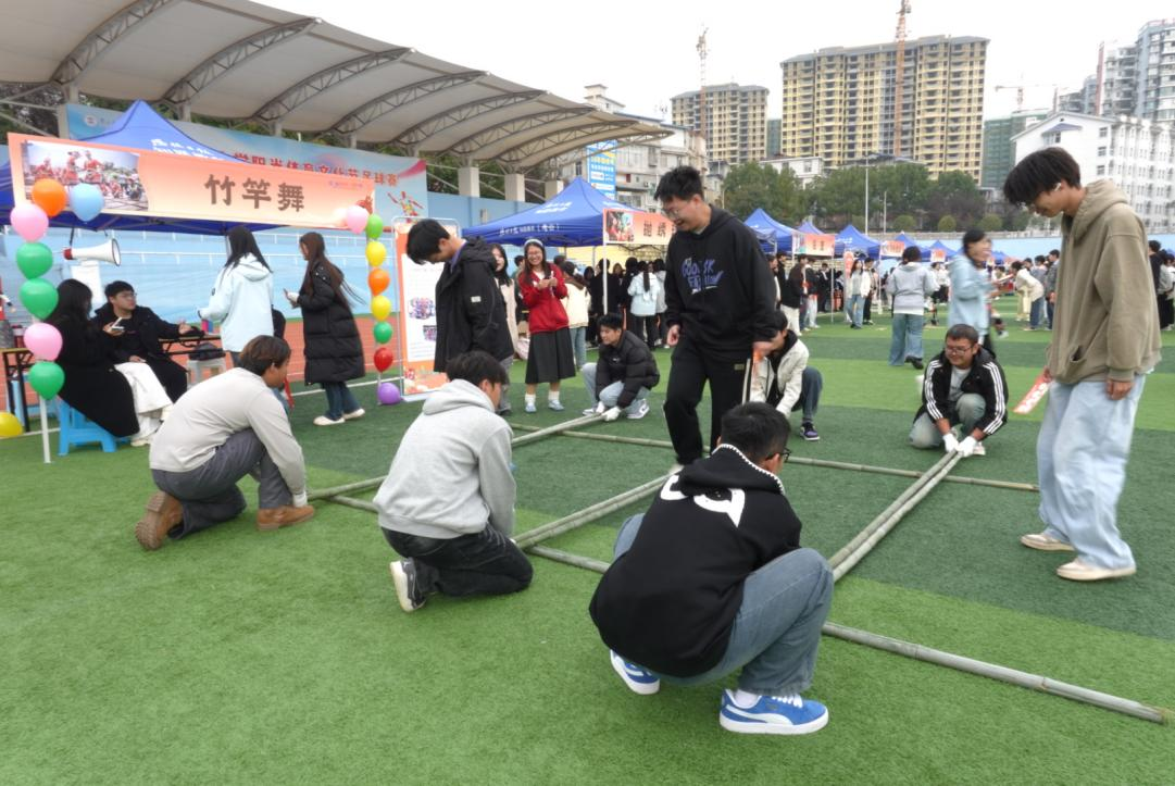 下午14时,押加、高脚竞速、蹴球、板鞋竞速、毽球等民族传统体育比赛及体验项目在五环体育场、毽球场、羽毛球场等场地同步进行。在普及少数民族体育运动项目知识的同时,也充分展现了民族运动的魅力,调动了学生参与体育活动的热情。