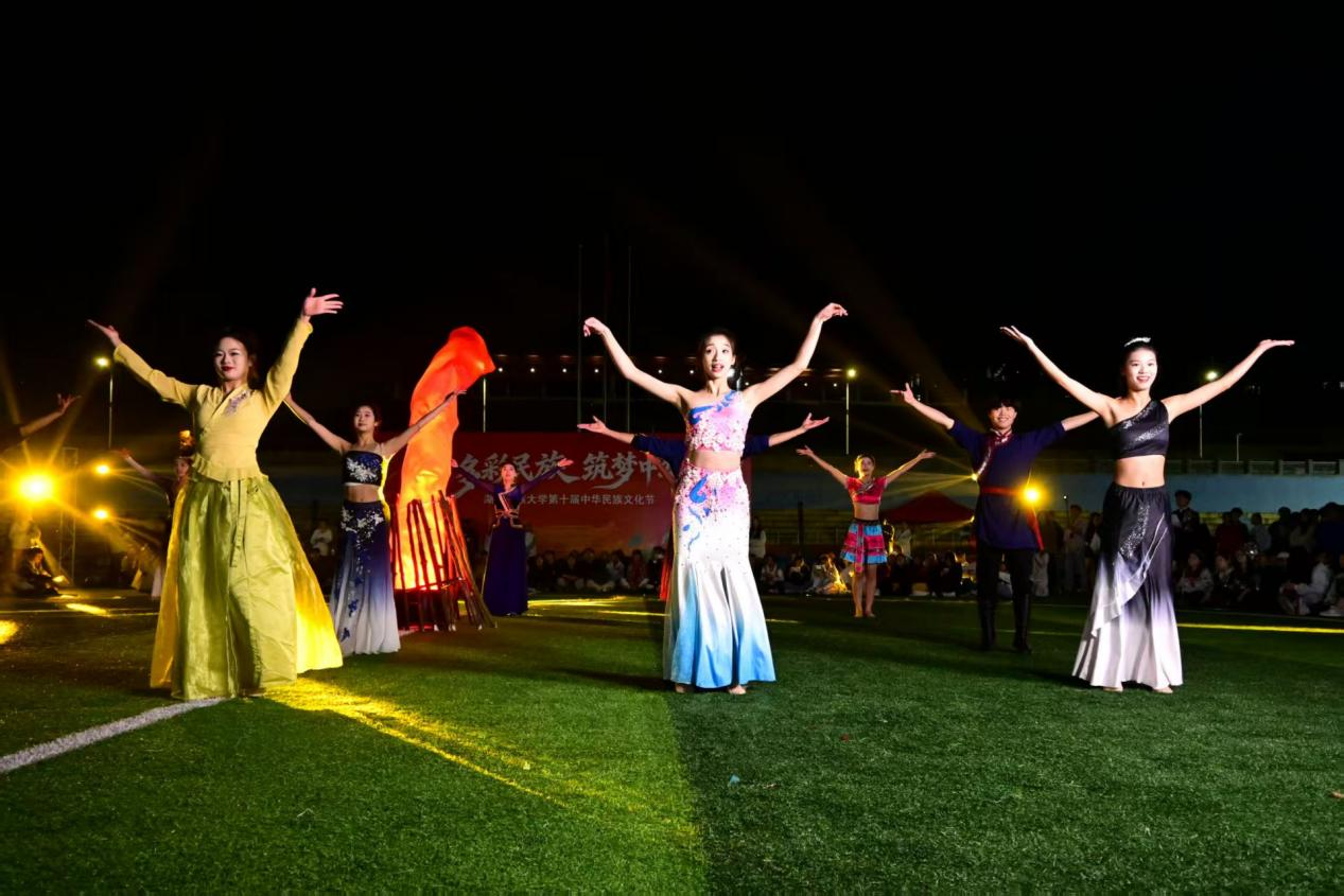 15日晚,“赏·多彩风情——文化展演与互动体验”篝火晚会将整个活动的氛围推向了高潮,来自不同民族的师生围绕电子篝火载歌载舞,舞蹈《画中游》《博克颂》、歌曲《土家土》《最炫民族风》等一个个具有不同民族风情的节目轮番上场,尖叫和掌声响亮全场,现场热情四射,气氛活跃。