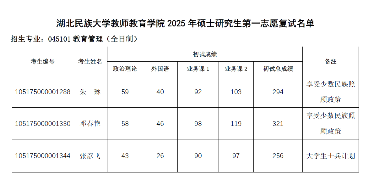 教师教育学院2025年硕士研究生第一志愿复试名单