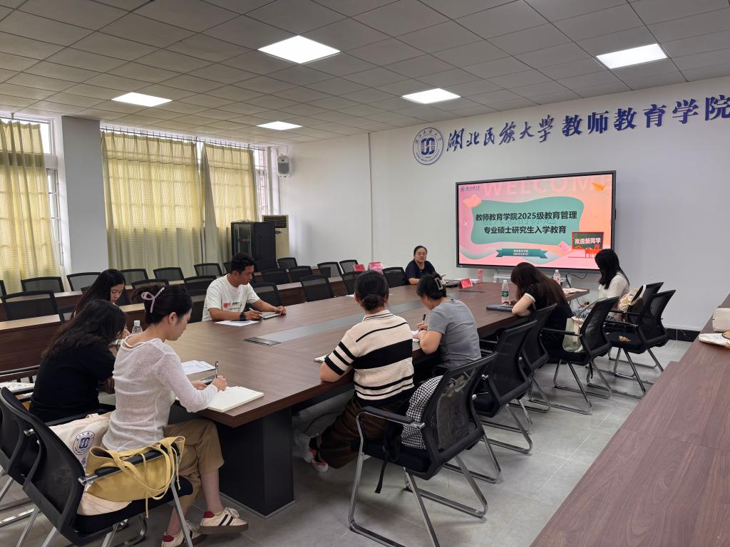 导师见面会后,学院还进行了新生入学教育。5号上午,由黄力组织进行安全和纪律教育,重点强调了学校有关学籍管理、违纪处分、住宿管理、安全管理和意识形态工作等方面的规定,并对近期教学工作进行了布置和安排。5号下午,由学科建设与研究生管理办公室主任李梦琪组织进行专业教育,解读了教育管理专硕人才培养方案,帮助研究生明确课程学习要求,做好学习规划。