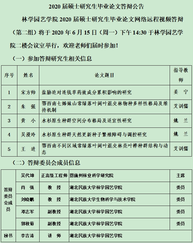 2020届硕士研究生毕业论文答辩公告