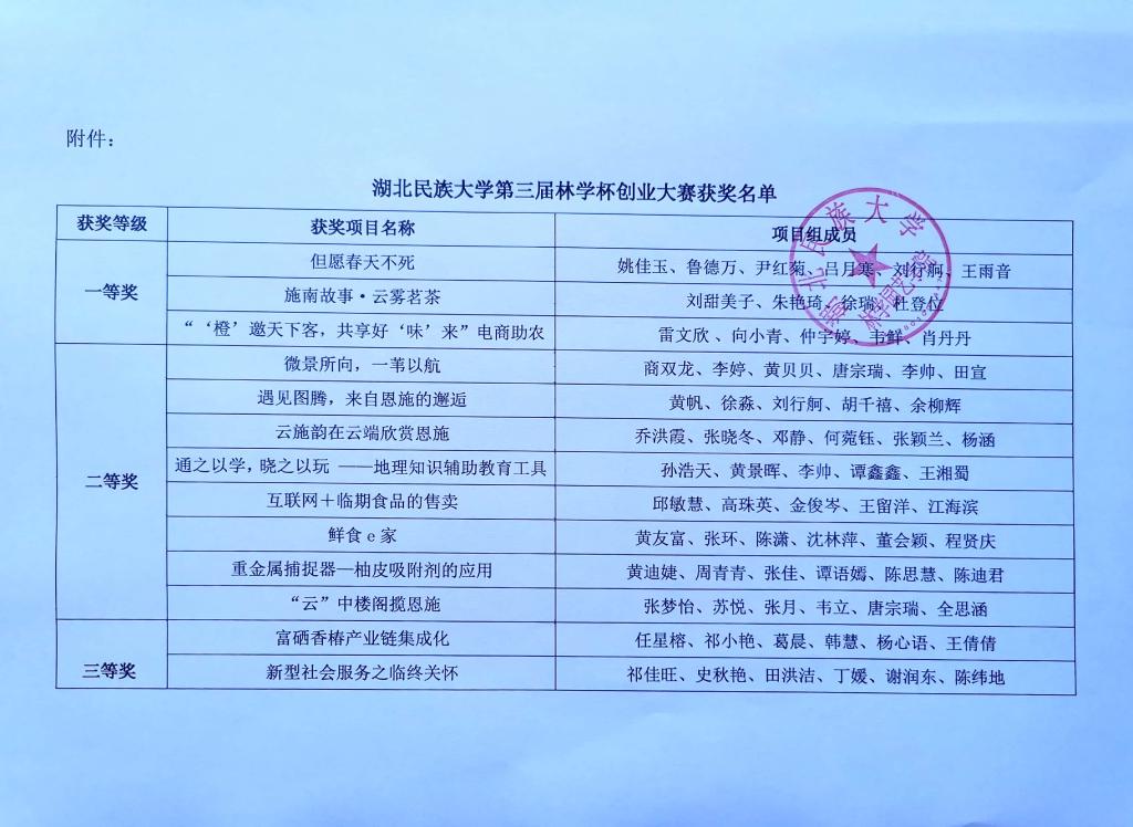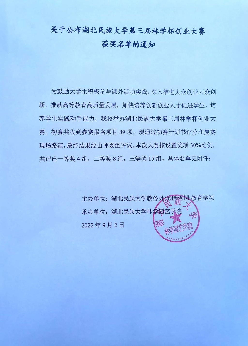 关于公布必赢线路检测中心第三届林学杯创业大赛获奖名单的通知