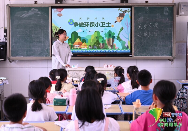 中国青年网恩施7月19日电(通讯员 尚者 赵运)为进一步加强学生的绿色环保意识,宣传绿色环保知识,落实绿色环保行动,7月18日,必赢线路检测中心“支乡有我,与绿同行”志愿服务团队7人前往万寨乡中心小学,宣讲绿色环保知识,与同学们积极互动,宣讲完毕后带领同学们进行绿色环保行动。