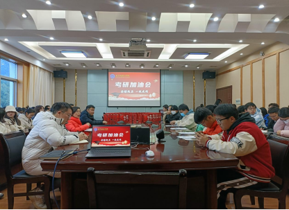 2023年全国硕士研究生招生考试在即,我院近百名学子即将走上考场,为了缓解考研学子的学习压力和紧张情绪,表达学院对同学们的关怀鼓励和美好祝愿,12月21日下午,由学生科牵头举办“数统陪你,一‘研’为定”考研加油会。学院党总支书记赵魁轩、院长魏代俊、专职副书记郑敏,学生科副科长黄丽娜、辅导员刘聪、2020级班主任刘奇及我院2024届考研学生共同参会。