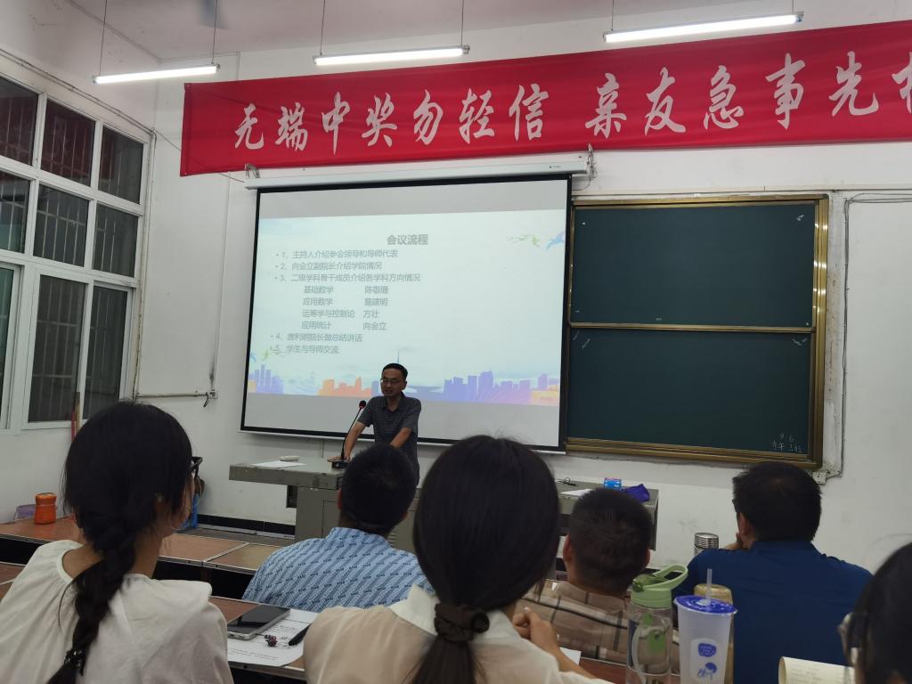 接着各二级学科导师分别介绍了基础数学、应用数学、运筹学与控制论和应用统计专业的师资队伍、科学研究、人才培养、服务贡献等方面内容。鼓励研究生们尽快进入角色,积极投身科学研究,实现自身全面发展。