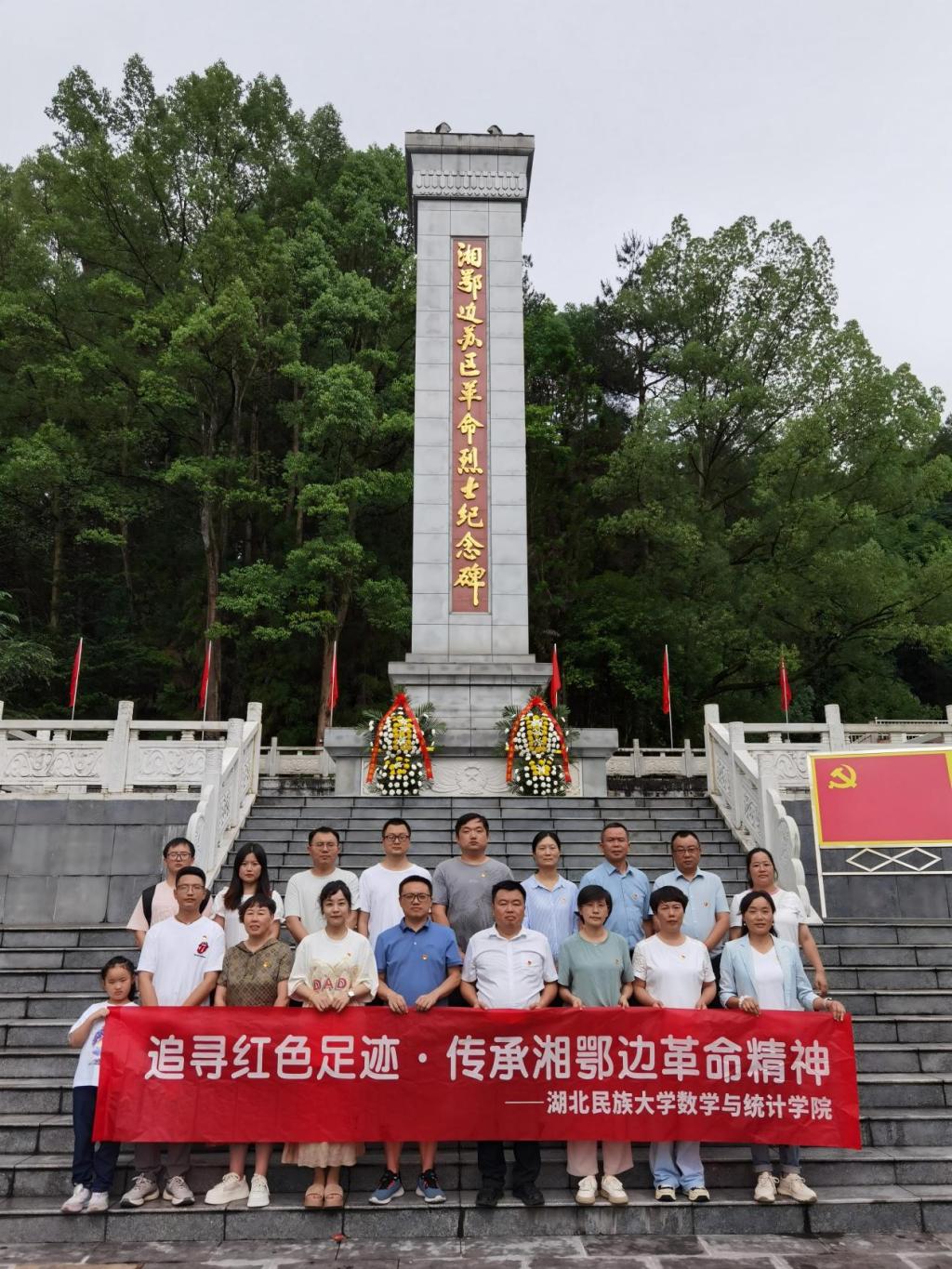 追寻红色足迹,传承革命精神。最后,教师党支部成员前往鹤峰满山红烈士陵园开展“追寻红色足迹·传承湘鄂边革命精神”特色实践活动。在烈士陵园,党员们怀着崇敬之心瞻仰革命烈士纪念碑,参观革命博物馆,聆听湘鄂边革命历史故事。通过此次活动,大家深刻感悟革命先辈的崇高精神,纷纷表示将以实际行动传承红色基因,把革命精神转化为奋进新征程的强大动力。