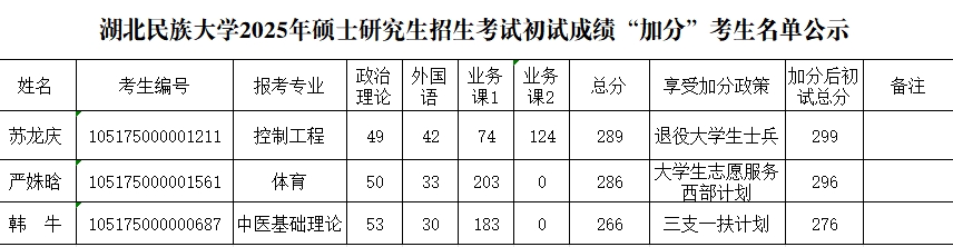 必赢线路检测中心2025硕士研究生招生考试初试成绩“加分”考生名单公示